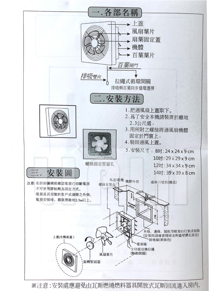 ◆排出濕氣:告別濕氣,保持室內空氣流動,擁有清爽的空間