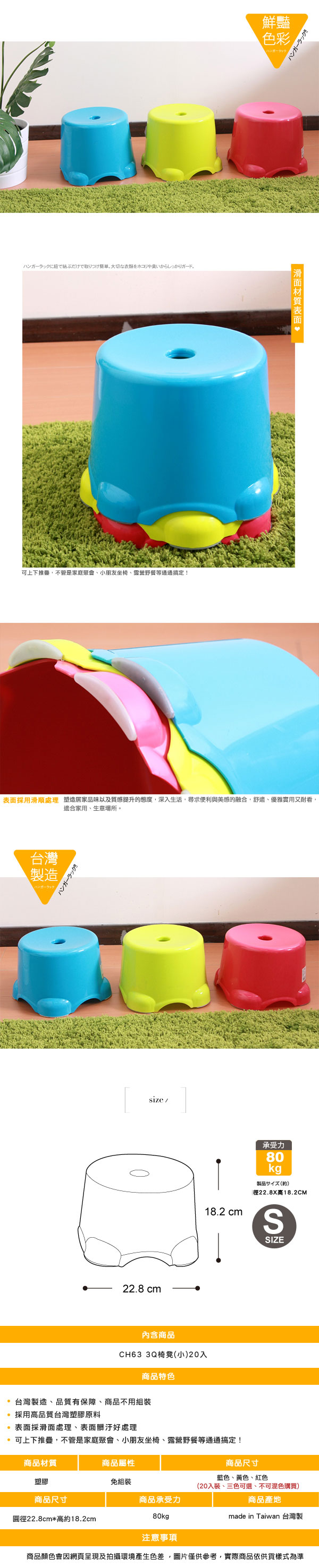 【HOUSE】3Q椅凳-小-20入/休閒椅/戶外椅/孩童椅/夜市椅(三藍色