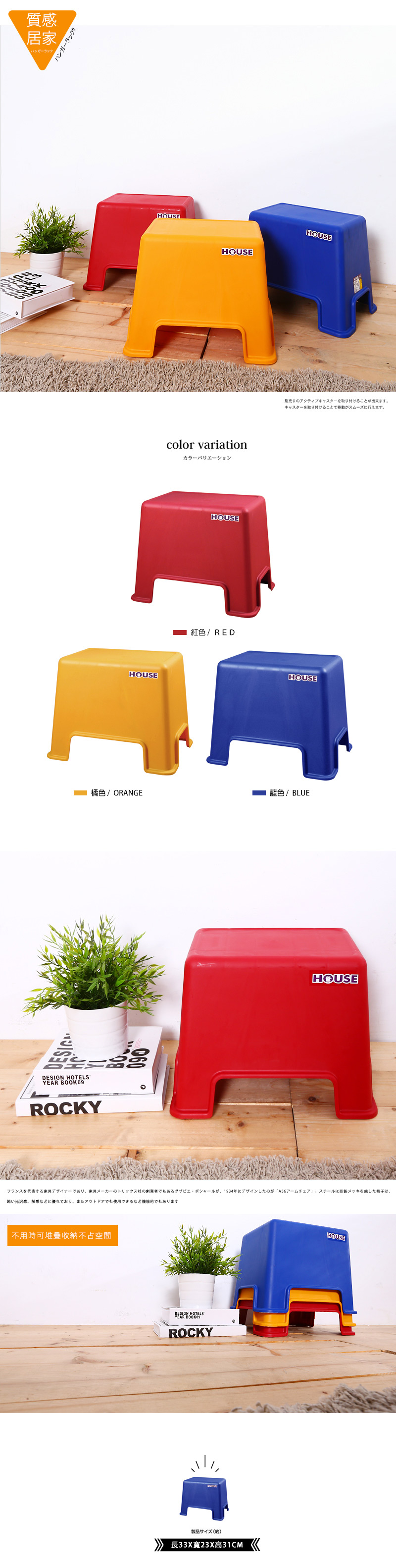 點我下載【HOUSE】金磚止滑椅/休閒椅/椅凳/夜市椅(4入)藍色