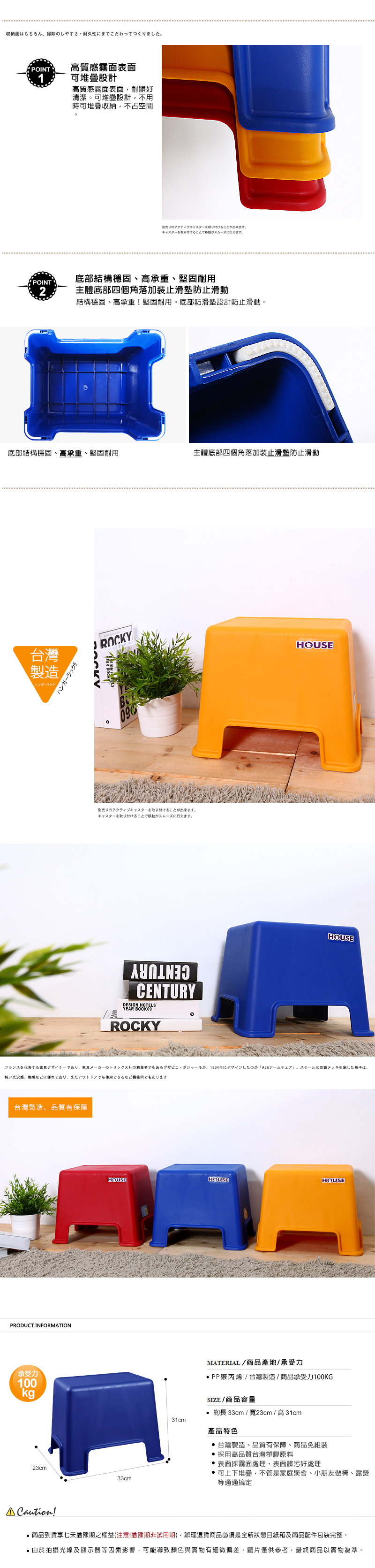 Safe 安適嚴選 雙層止滑椅 加厚PP材質 穩固不倒 圓弧設計 輕巧 凳子 大(33.5 x 25.5 x 25cm) 顏色隨機 1個
