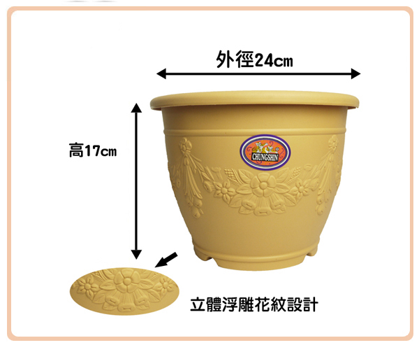 台灣忠興公司製造的塑膠盆,是PP耐衝擊塑膠加強材質,不容易損壞,有排水孔,防止底部積水.