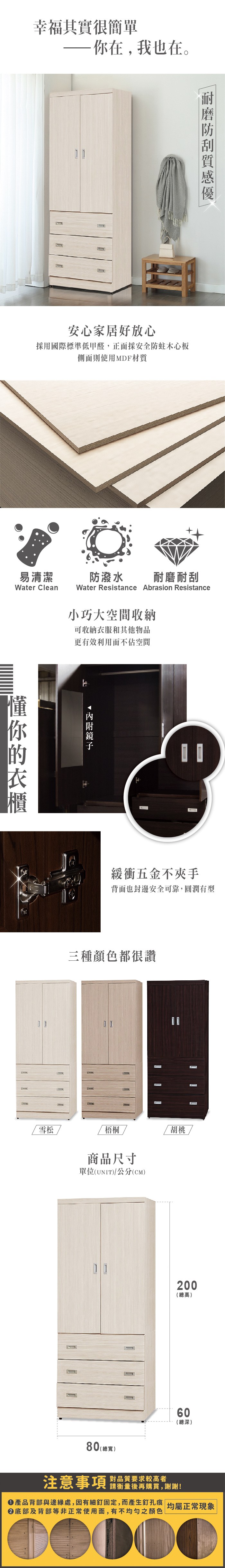 AS雅司-DoubleHappy3×6尺下二抽衣櫥-81.2*58.2*180cm