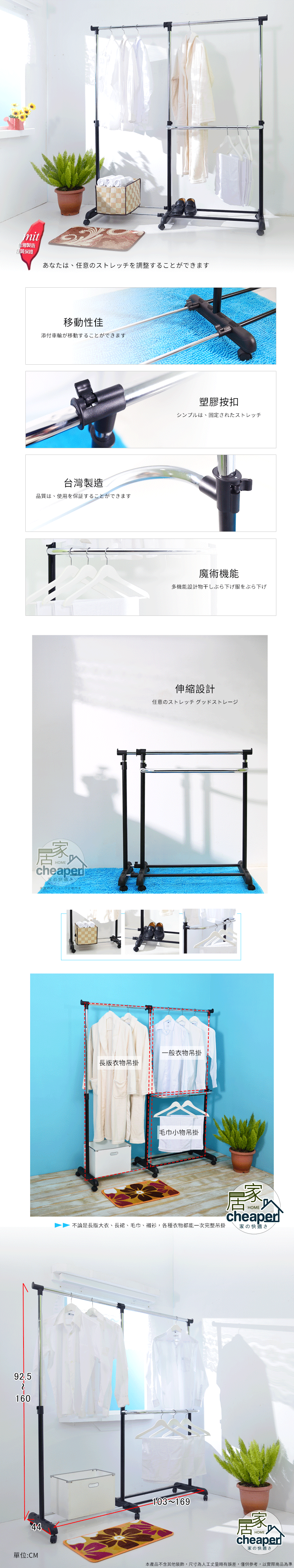 【IDEA】旗艦版2.4米不銹鋼X型移動式帶輪曬衣架/晾衣架 曬衣桿