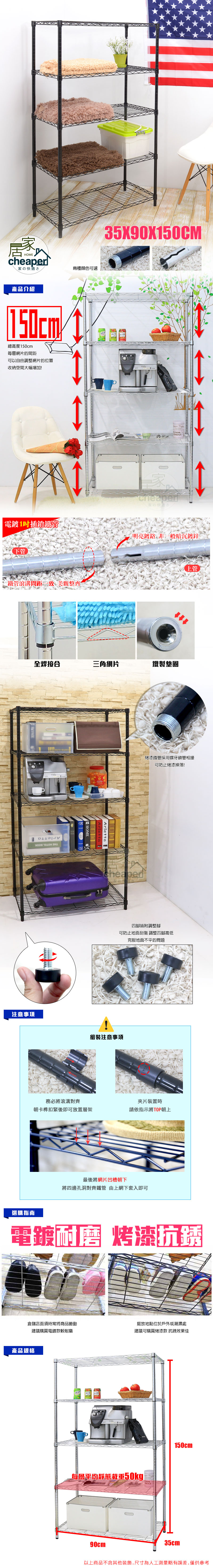 鋼鐵力士 四層架 鐵材質 PP材質 白色 36 x 91 x 150cm 4層