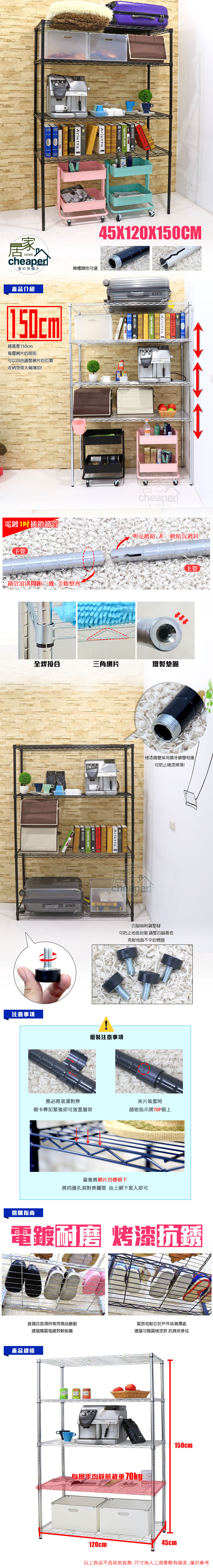 【居家cheaper】MIT五層鐵力士架45X120X150cm電鍍銀