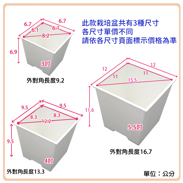 名稱:四方型栽培盆5.5吋-白色(厚) 20個/組