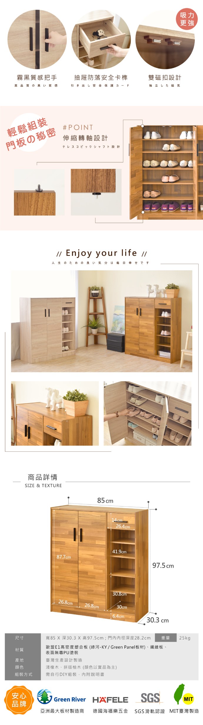 HOPMA家具 摩登三門五層鞋櫃 台灣製造 玄關收納櫃 置物邊櫃 鞋架-寬76 x深32 x高85.5cm;內徑深度30.5cm