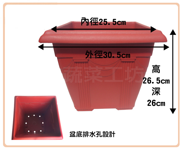 名稱:忠興1尺正四方盆磚紅色