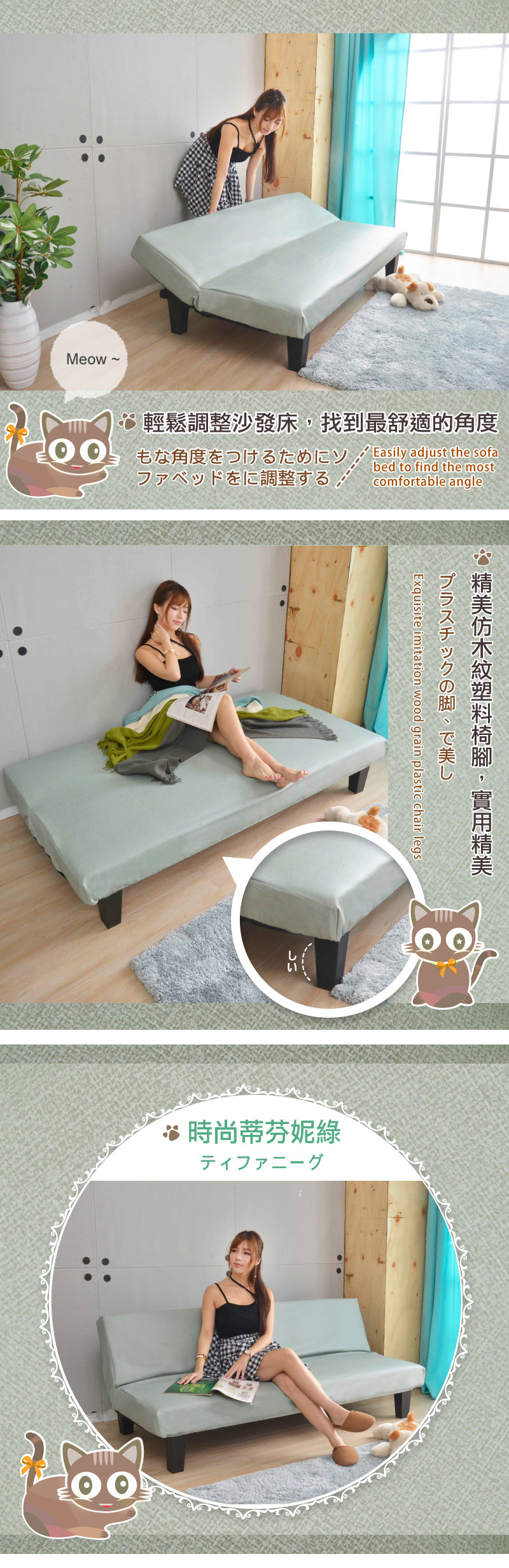 ‧椅背可分段調整沙發及床變化式,或坐或躺~皆能滿足您空間需求。