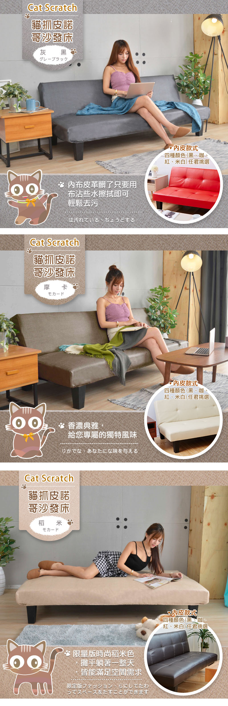 《四種》沙發顏色+《五種》貓抓皮革沙發套任選 (多達20種組合任選,要買趁現在,數量有限售完為止喔~)