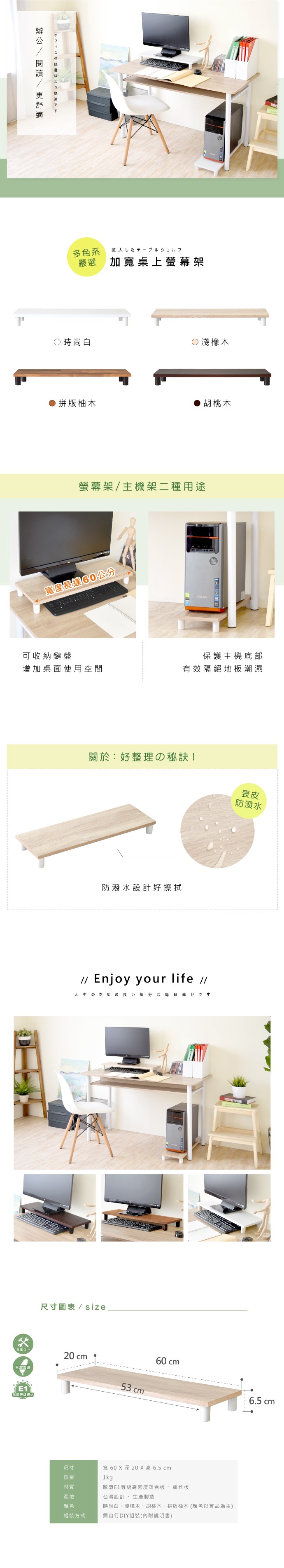 HOPMA 合馬家具 加寬桌上螢幕架 雙入 60cm 螢幕主機二用架 淺橡木 漂流木