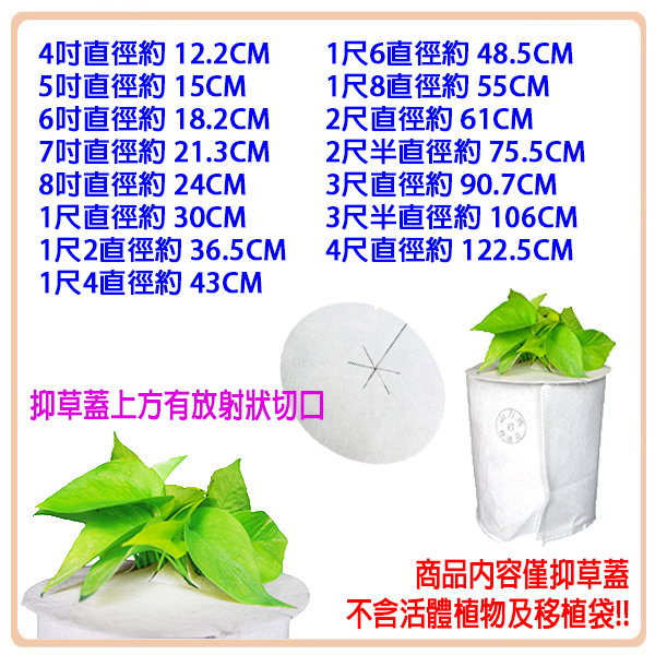名稱:抑草蓋.圓盆專用雜草蓆.雜草抑制蓆(不織布)4吋
