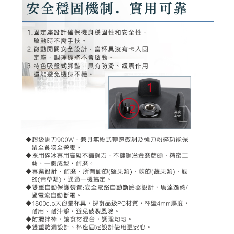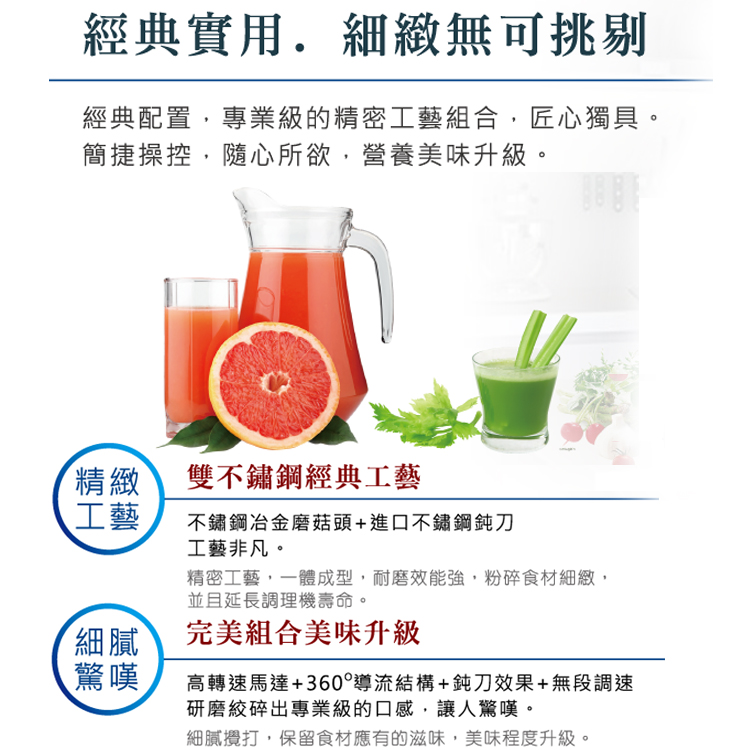 ◆超級馬力900W,兼具無段式轉速微調及強力粉碎功能保留全食物全營養。