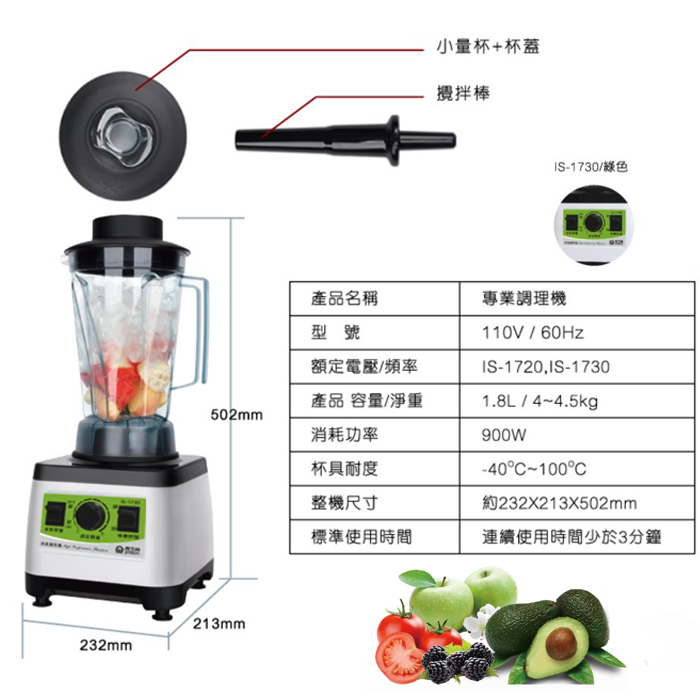 晶工牌 1800cc專業調理機 IS-1730