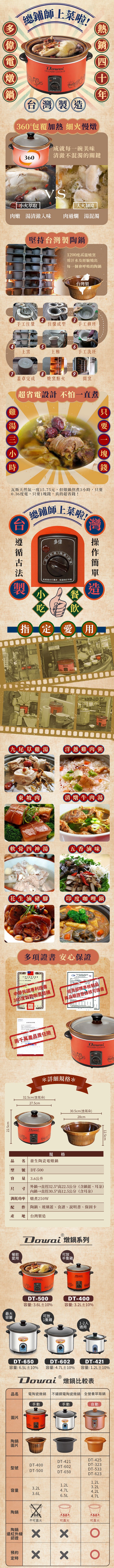 【DOWAI多偉】台灣製造3.6L陶瓷燉鍋 DT-500