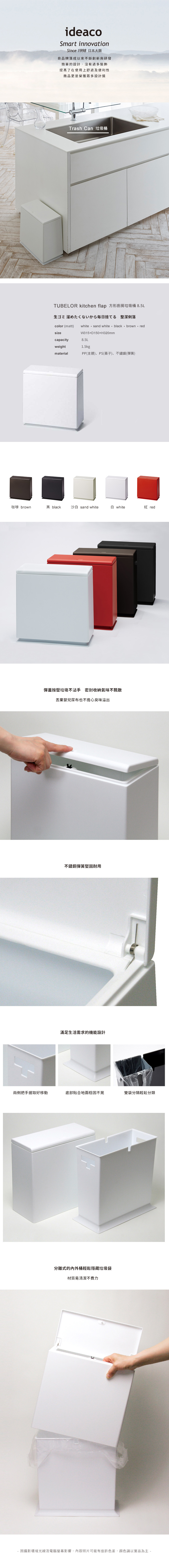 【日本ideaco】方形廚房按壓式垃圾桶-8.5L沙白