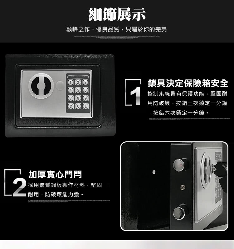 【守護者保險箱】迷你 保險箱 電子 密碼 保險櫃 17E 黑色