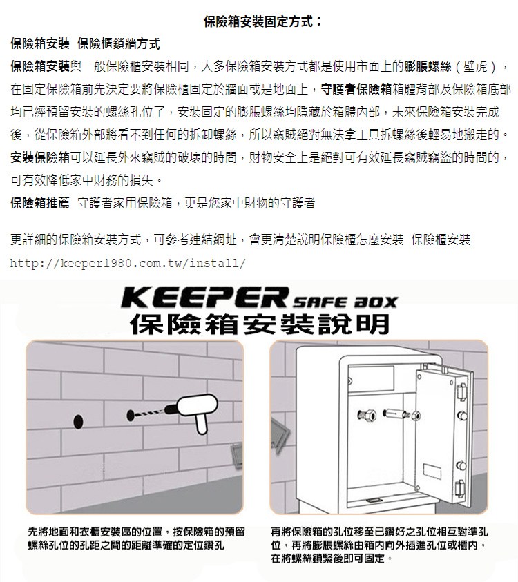 KEEPER SAFE BOX 守護者保險箱 雙鑰匙款保險箱 防盜三門栓/雙層大空間 50EAK 500 x 350 x 300mm 黑色