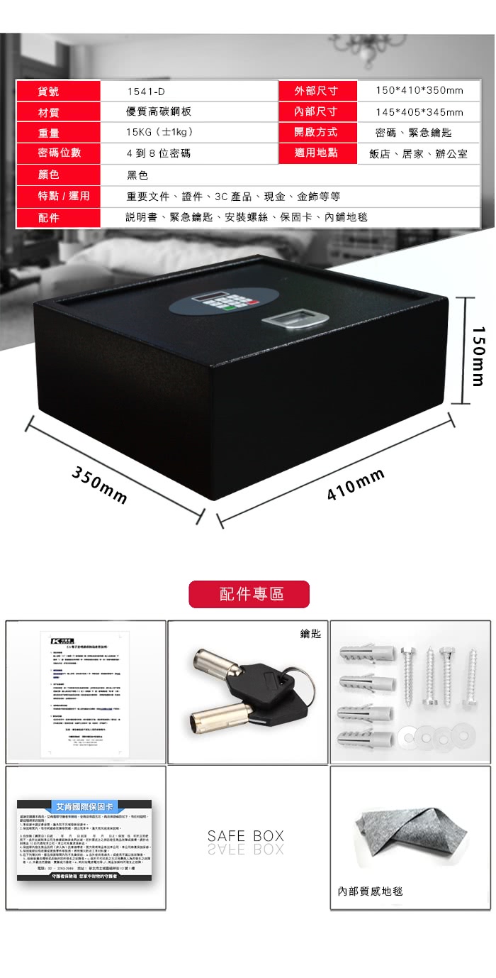 【守護者保險箱】保險箱 保險櫃 保管箱 電子 防盜 1541-D