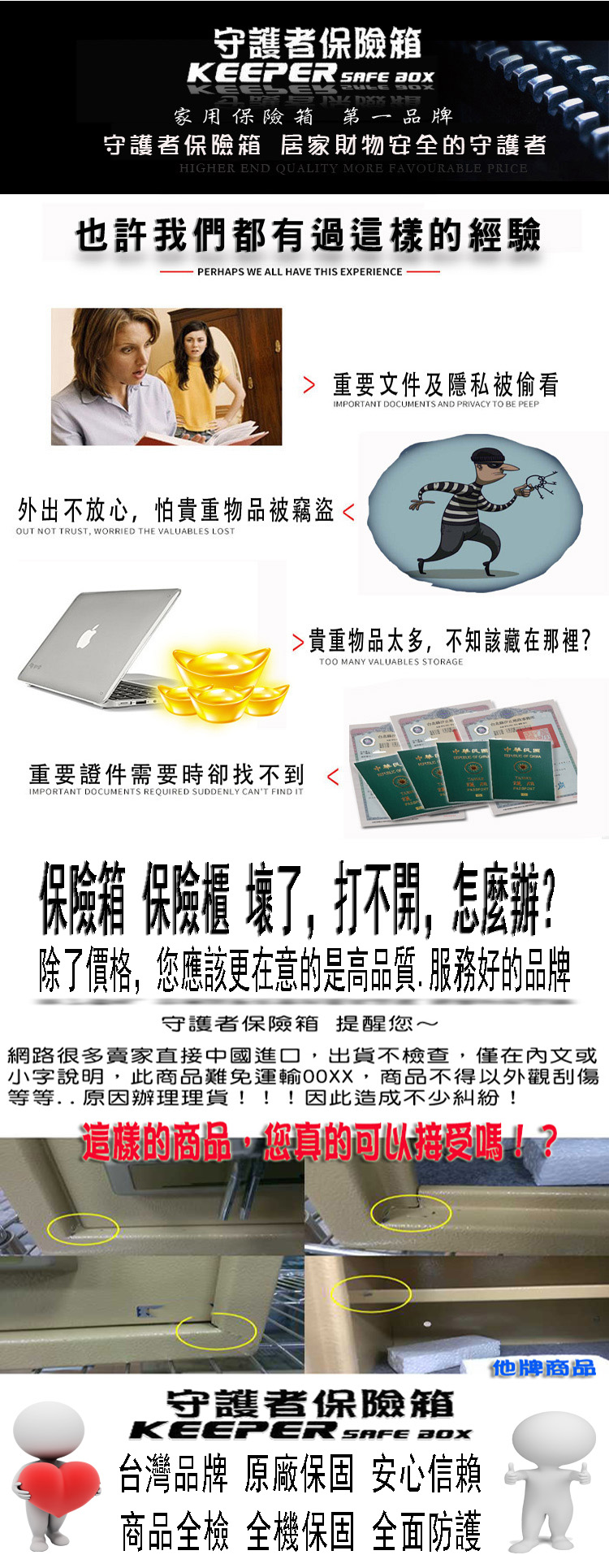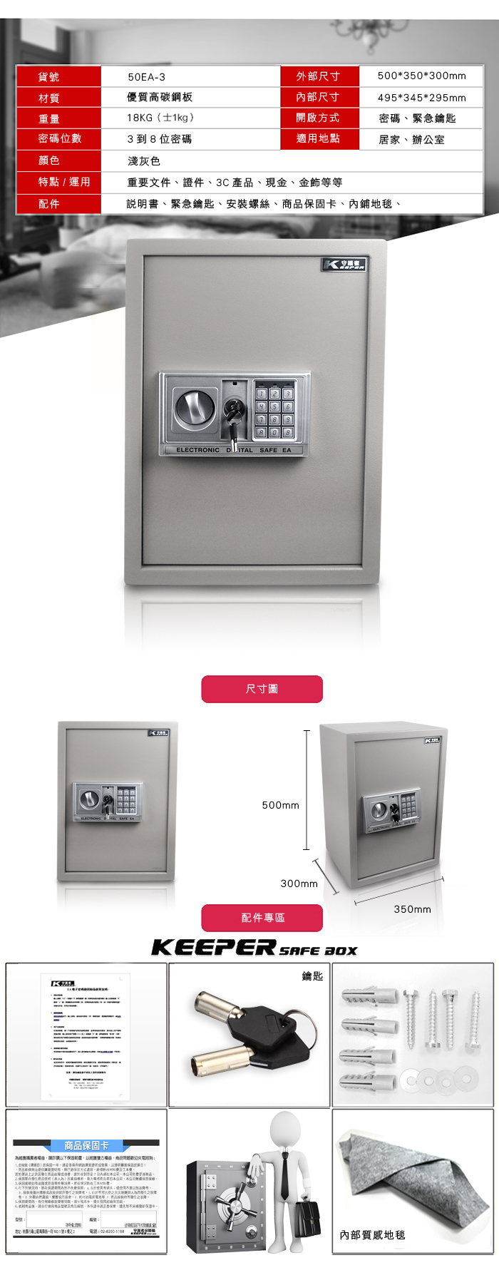 KEEPER SAFE BOX 守護者保險箱 雙鑰匙款保險箱 防盜三門栓/雙層大空間 50EAK 500 x 350 x 300mm 黑色