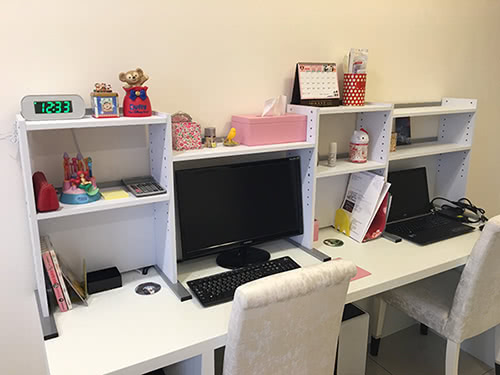 1. 兩塊活動層板,將原本的平面桌面,變成三層立體空間,加大使用面積。