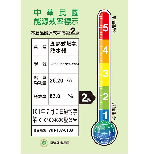 林內 TUA-C1300WF(NG1/FE式) 屋內強制排氣13L熱水器(天然)