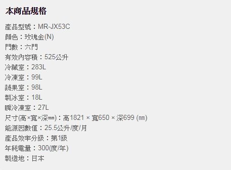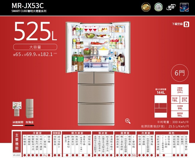 預購 MITSUBISHI 三菱 MR-JX53C 525公升 六門變頻冰箱 日本原裝玫瑰金\t
