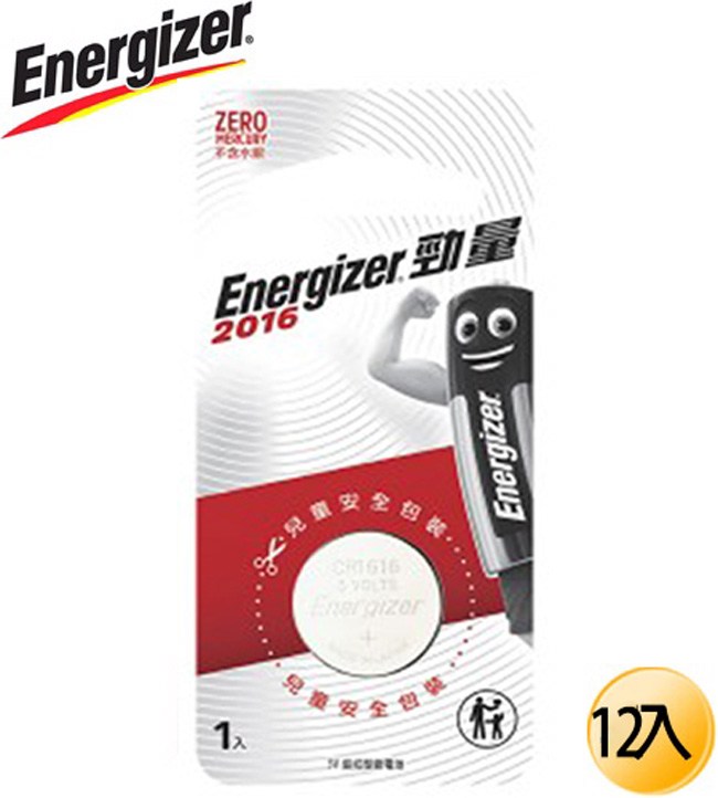Energizer勁量CR2016鈕扣 鋰電池 12入
