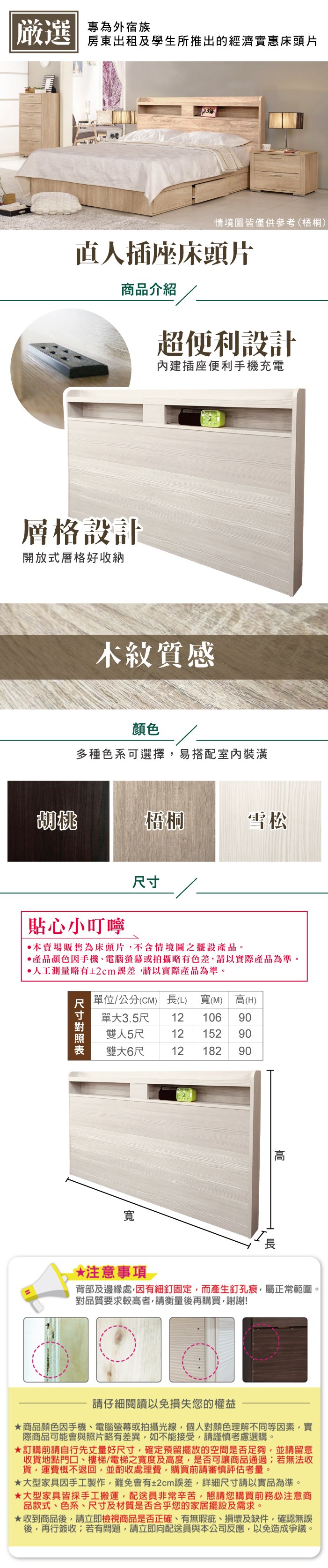 【本木】羅格 日式插座床頭-單大3.5尺梧桐