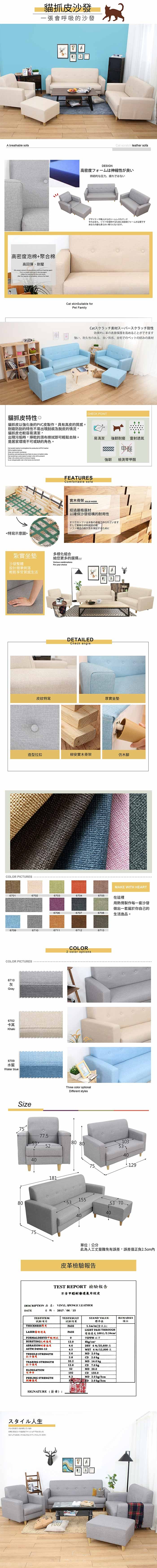 《潔西卡》湖水綠 貓抓皮 L型沙發三人座 腳凳 深灰色 淺灰色 現代 簡約 高背款 客廳 辦公室 台灣製造 【新生活家具】