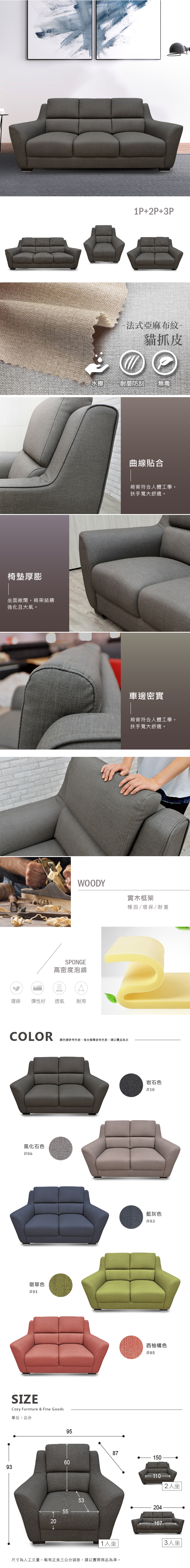 【H&D東稻家居】貓抓布獨立筒L型沙發/布沙發/三人沙發/貓抓布-2色【0899】/舒適寬敞大沙發/