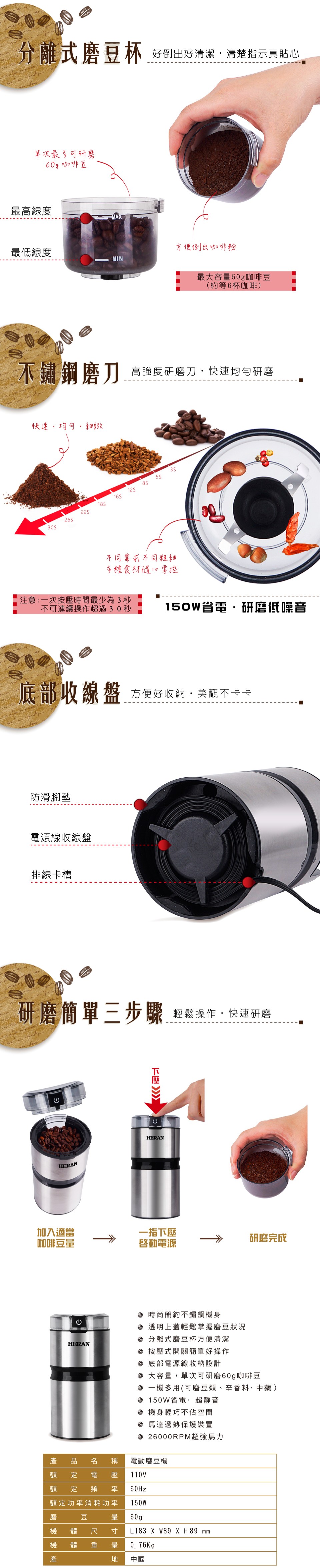 HERAN禾聯 不鏽鋼電動磨豆機 HCG-60K1