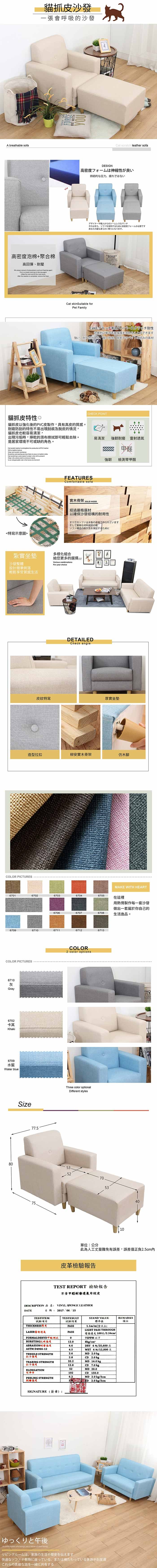 【多瓦娜】帕斯尼貓抓皮時尚單人沙發/三色水藍