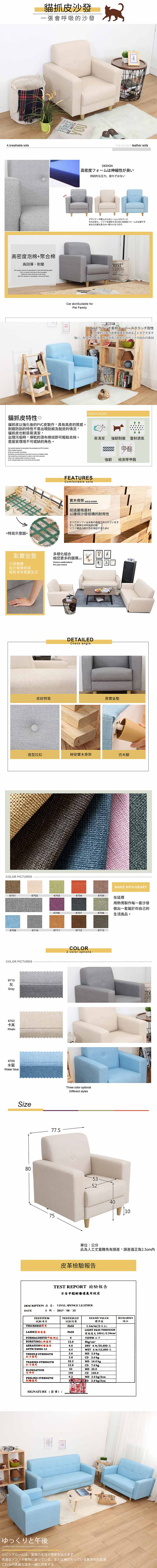 【UHO】馬克思-貓抓皮單人沙發(運費另計)218灰