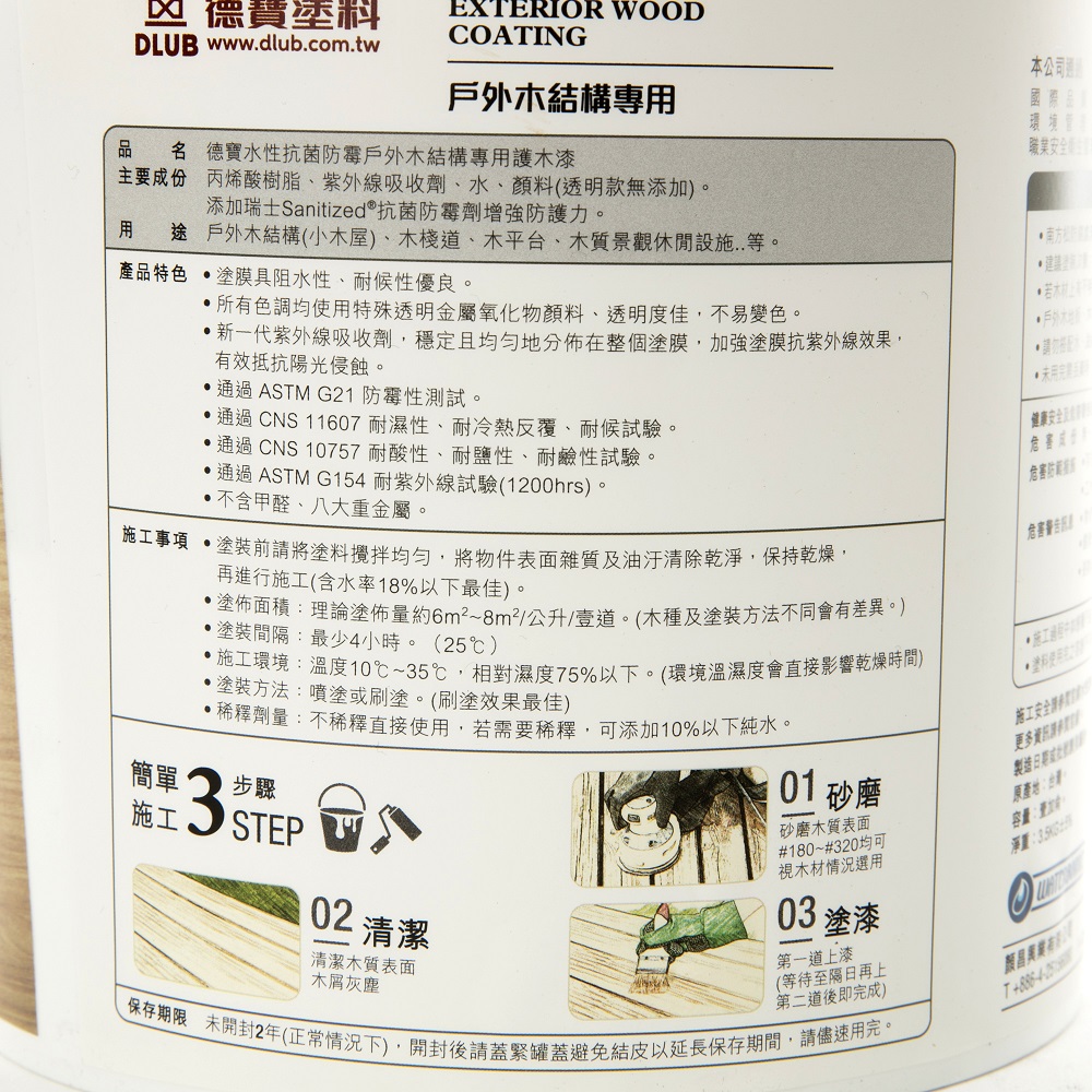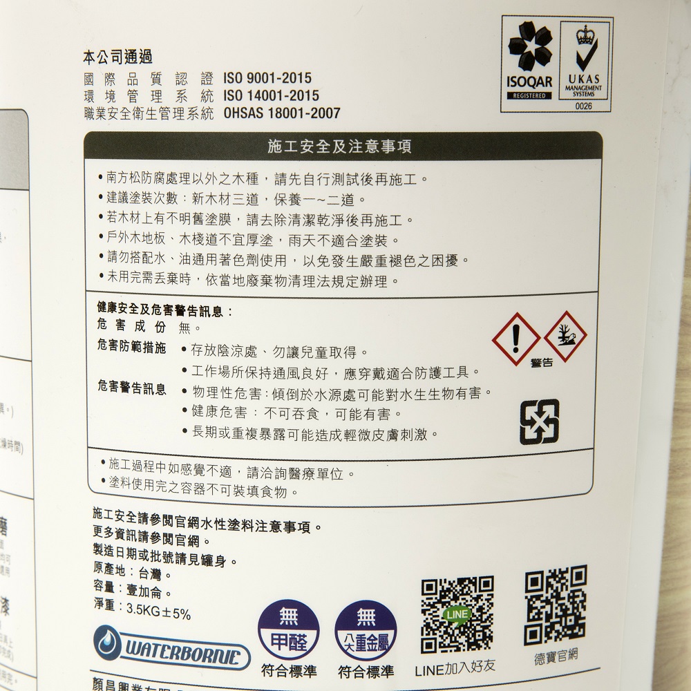 德寶 水性 護木漆 透明 亮光 3.5kg