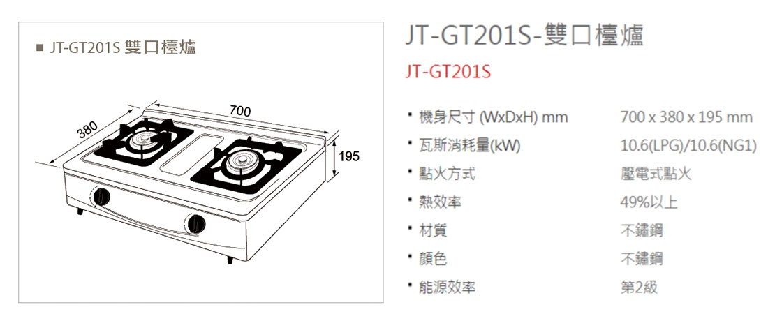 喜特麗JT-GT201SP-雙口檯爐-液化