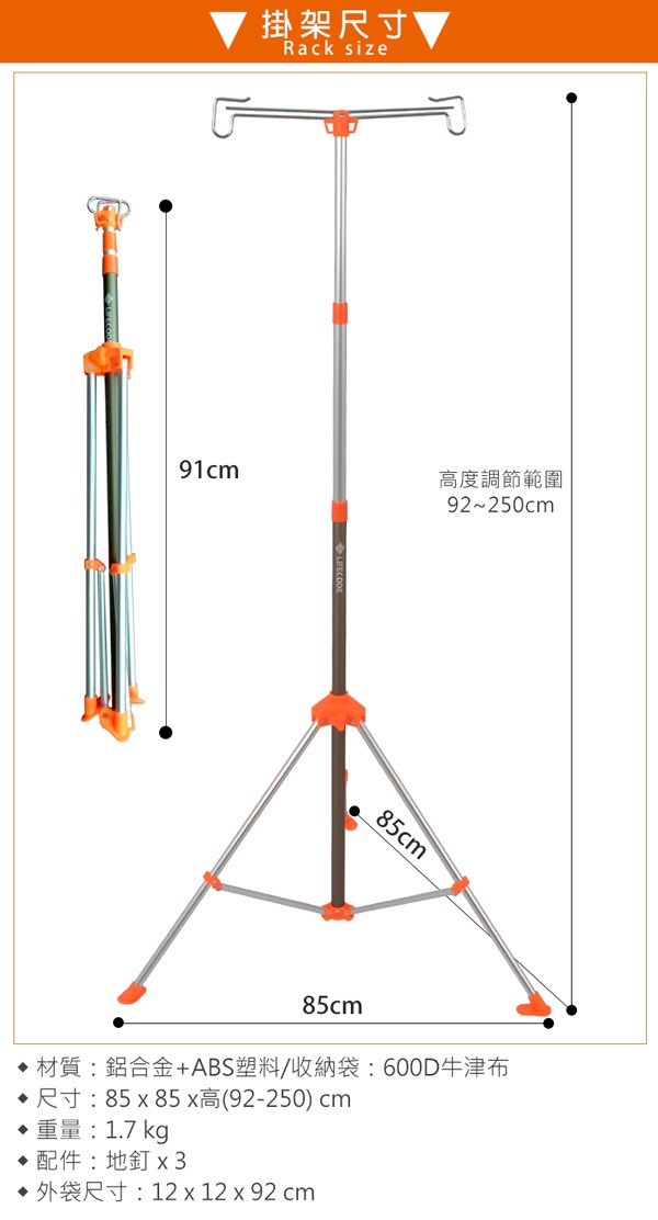 Forest Outdoor 群森戶外 航太鋁合金伸縮營燈架 220~77cm 消光黑 1個