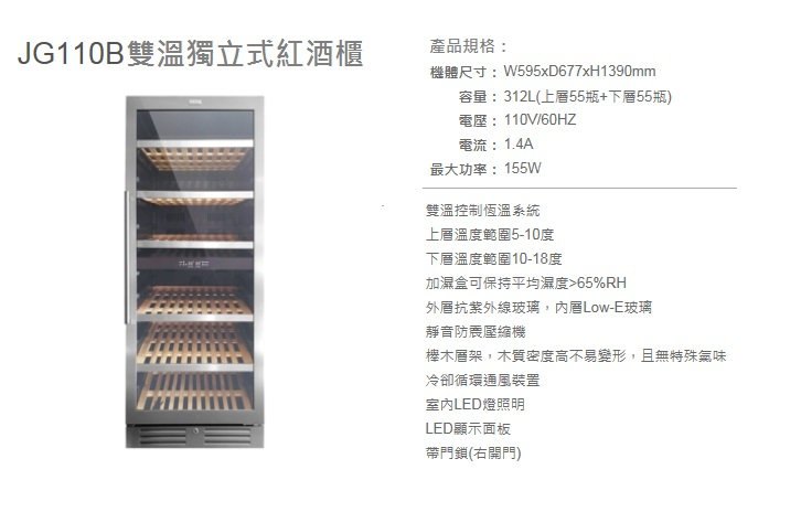 svago 享樂 JG110B 312公升雙溫獨立式紅酒櫃 (110V)