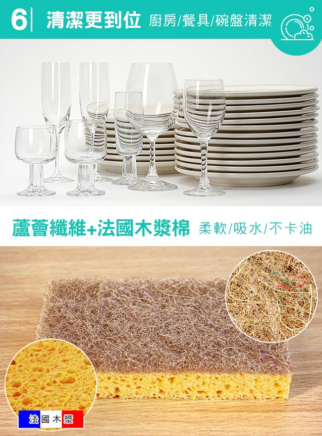 ◆法國木漿有良好的含水性,可以搭配洗劑去除重油汙。