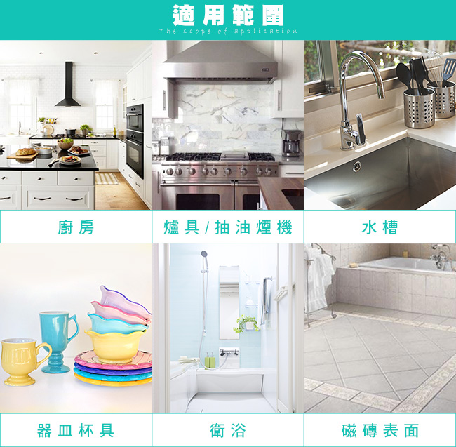 ◆面對油膩膩的鍋具、碗盤、刀具、砧板,能有效去除油漬。