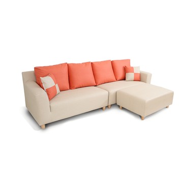 【Hampton 漢汀堡】湯瑪斯三人沙發含腳凳-布面-多色可選(L型沙發/3人座/布面/含腳凳/布寶石藍