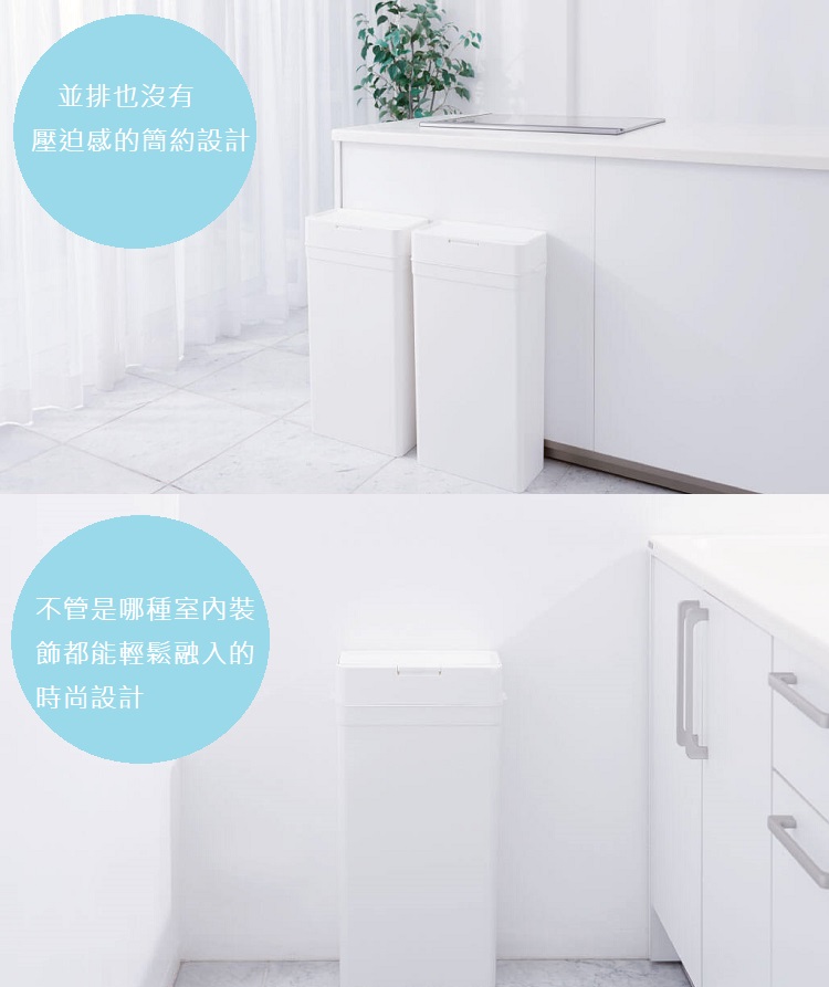 【日本Like it】隙縫型多功能防臭按壓式垃圾桶 45L-白色