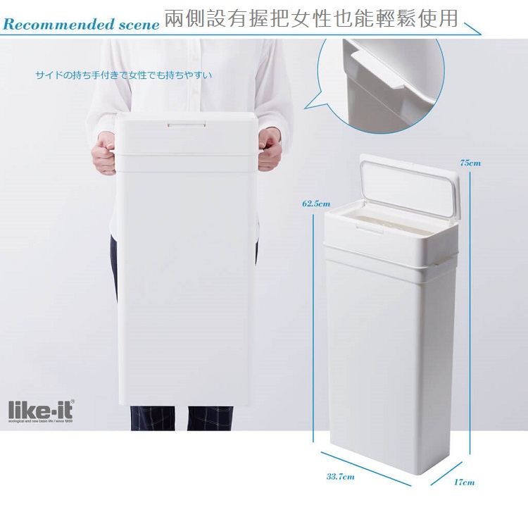日本Like-it Seals 寬型前開式垃圾桶25L