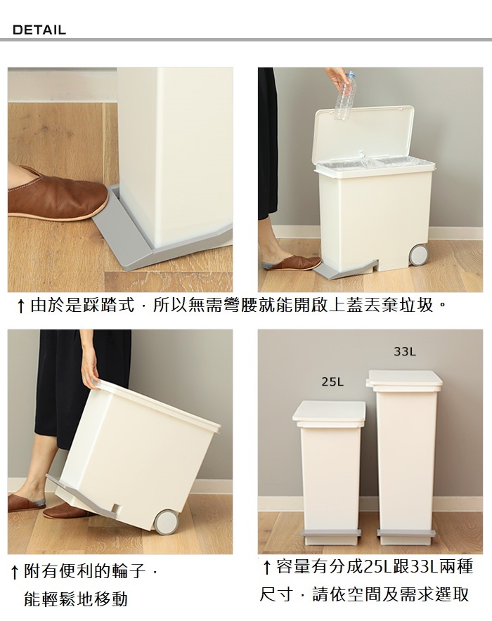 (H&H系列)防臭連結垃圾桶 33L - 三色 米白色