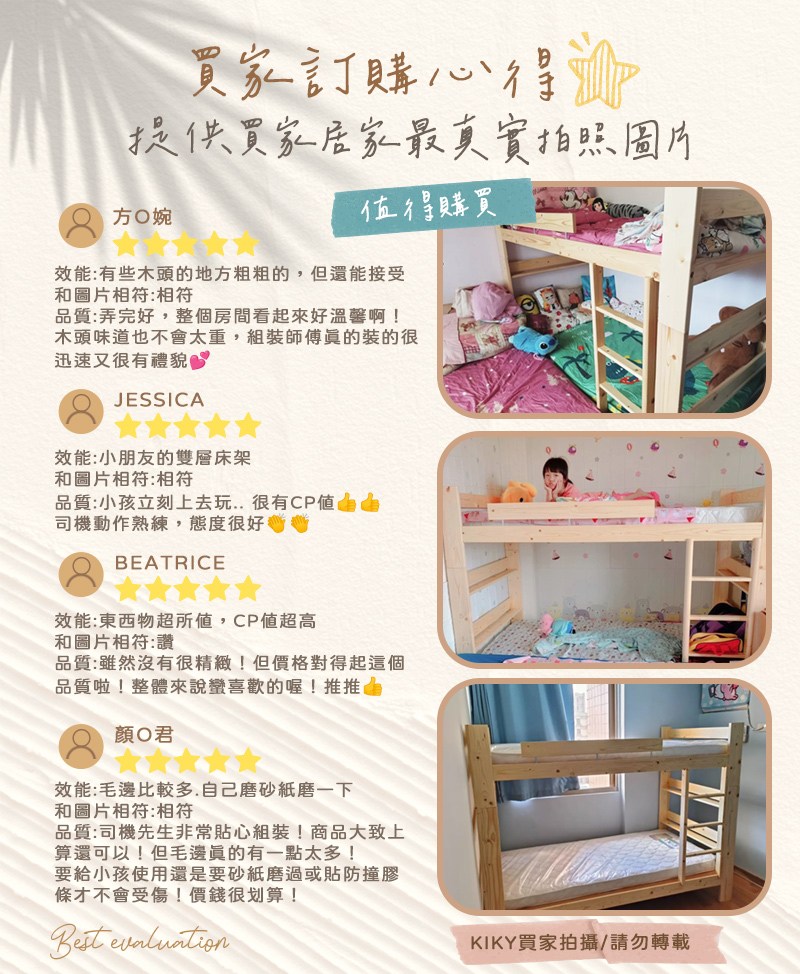 【KIKY】米露白松雙層床架3件組(雙層床+床墊X2)
