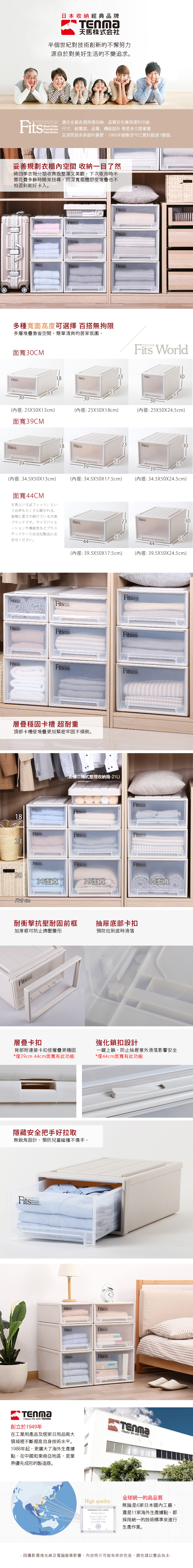【日本天馬】日本製 Fits 39面寬單層抽屜收納箱-高18CM-3入