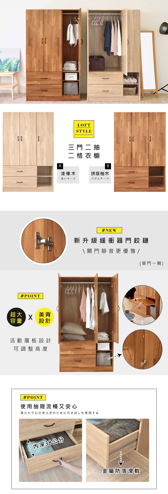 秘寶在這HOPMA》美背復古三門二抽二格衣櫃 台灣製造 衣櫥 抽屜櫃 衣物收納櫃-拼版柚木