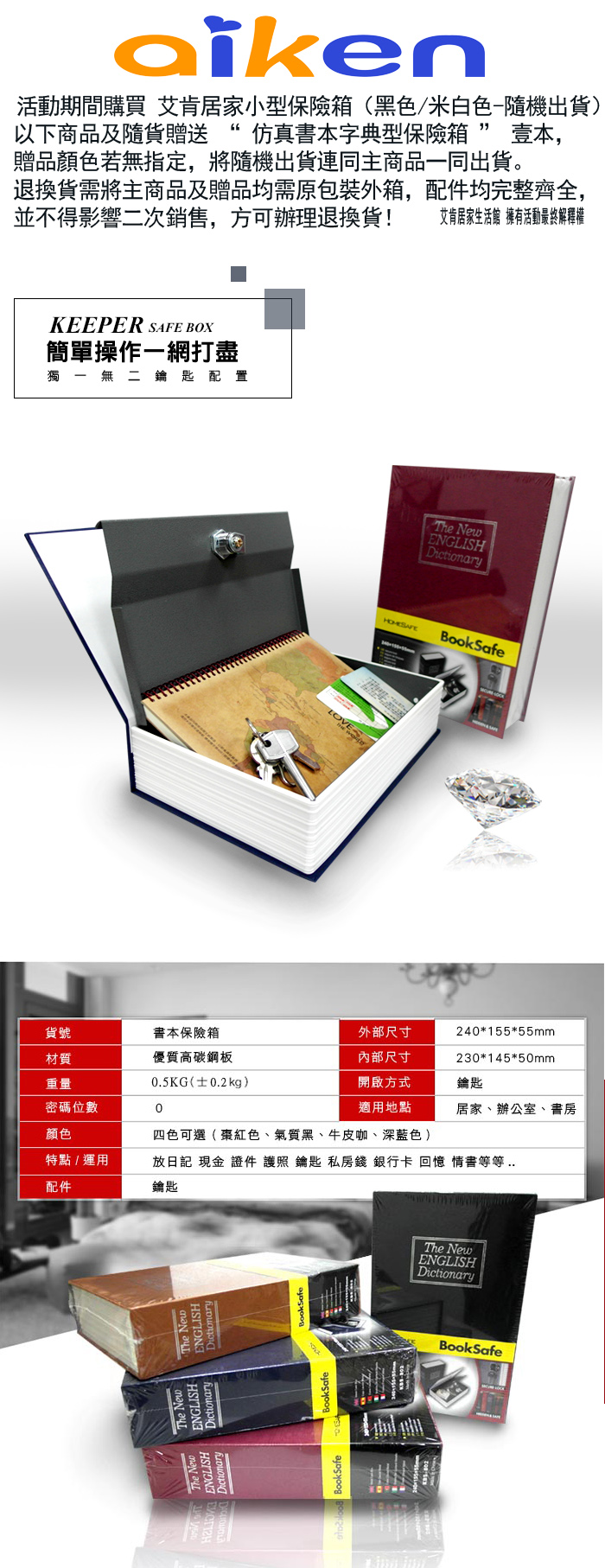(買一送一)小型 家用 電子保險箱 17E (米白色) 書本型保險箱-紅