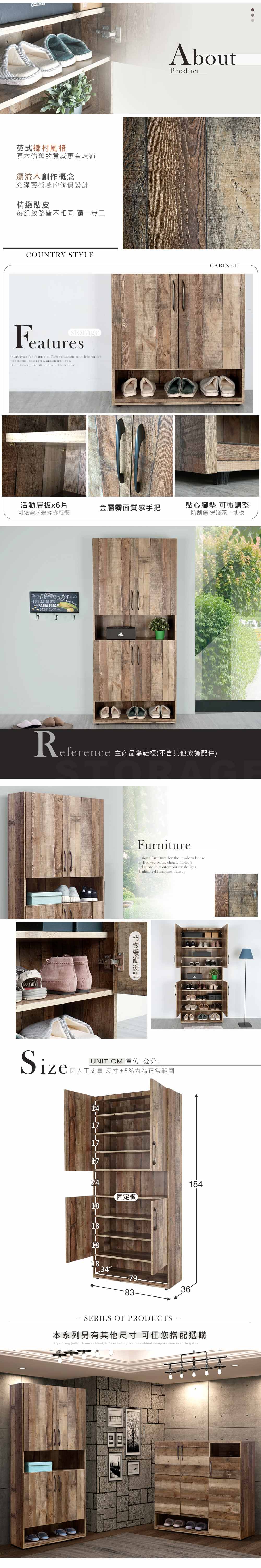 HOPMA家具 摩登三門五層鞋櫃 台灣製造 玄關收納櫃 置物邊櫃 鞋架-寬76 x深32 x高85.5cm;內徑深度30.5cm