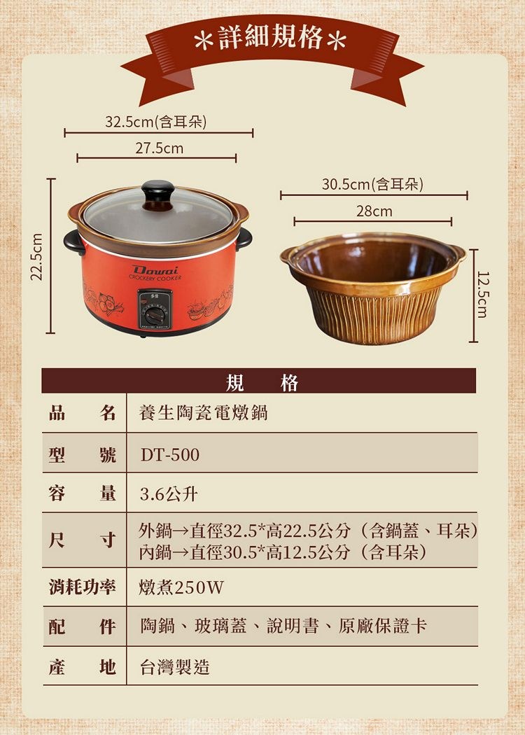 Dowai多偉 3.6L多偉陶瓷電燉鍋養生燉鍋 DT-500 ~台灣製造